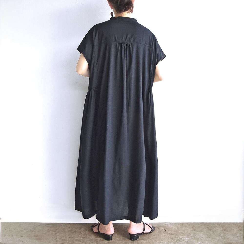 スタンドカラーの首元と縦の切り替えでスッキリと見える