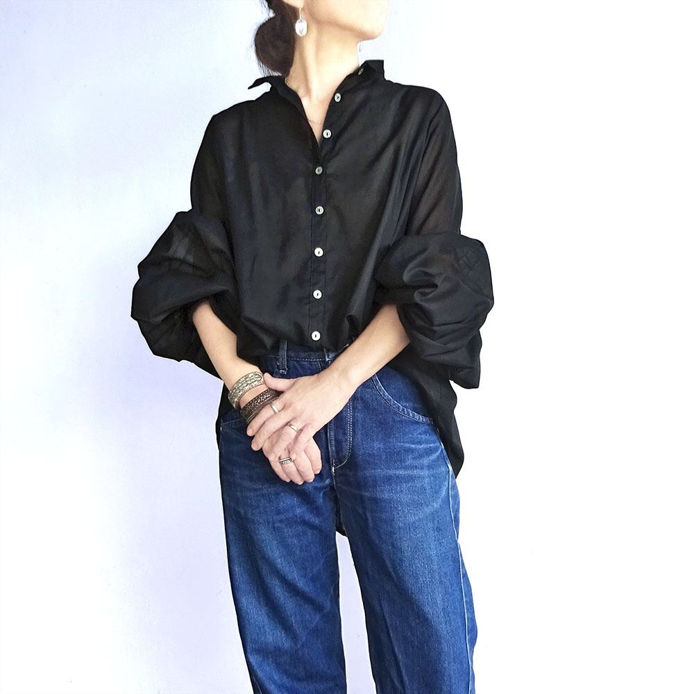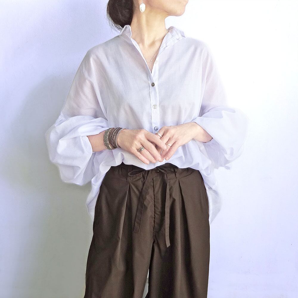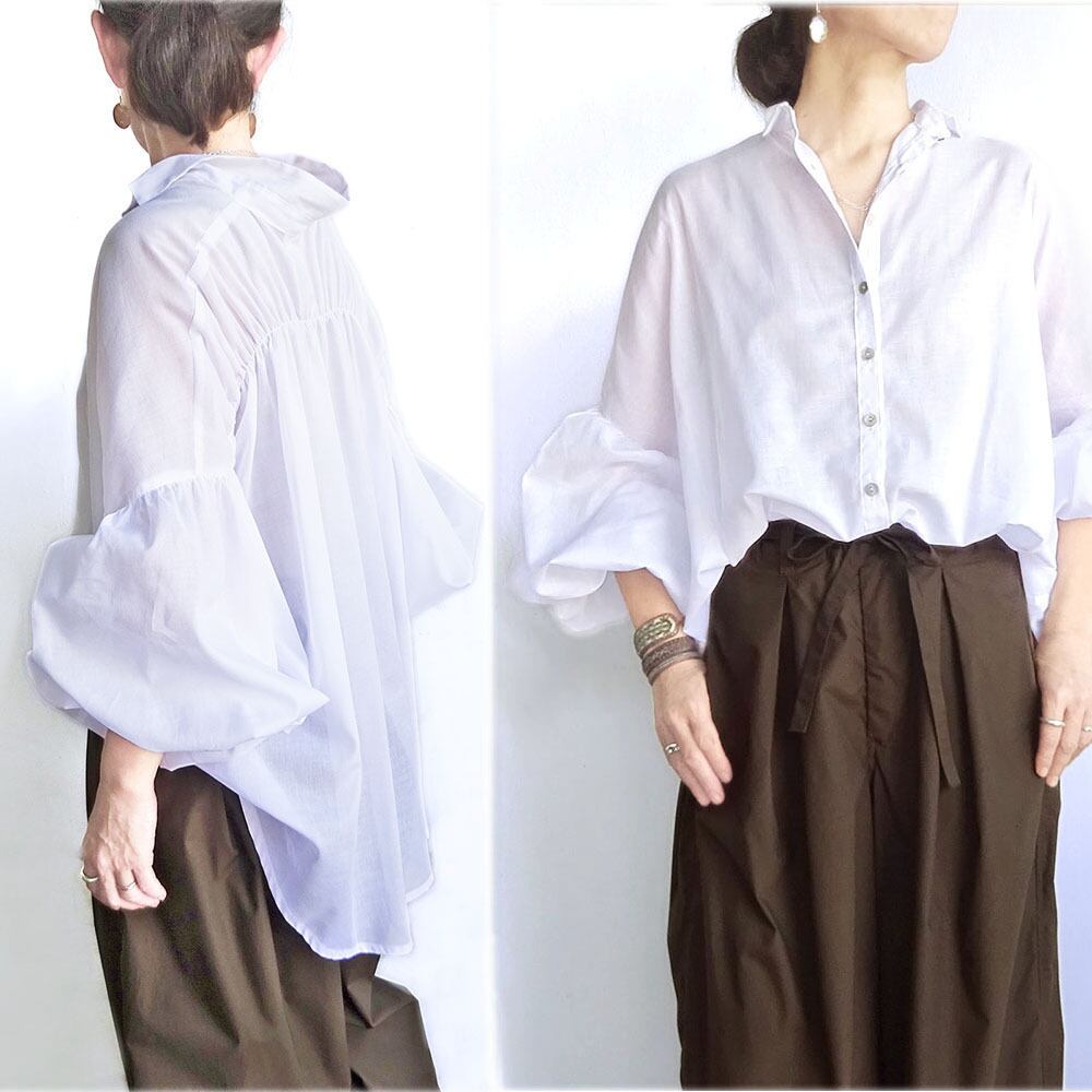 極薄コットン袖コンシャスブラウス(ホワイト)