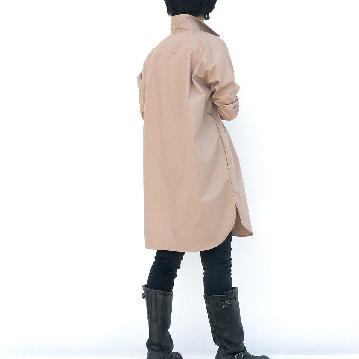 ハリのある高密度コットンダウンプルーフを使用したロングシャツ