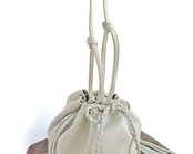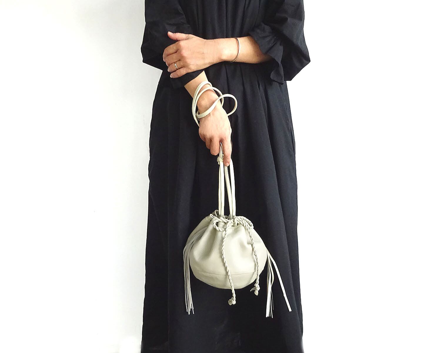 丸く可愛らしいボディーに2本の革ひもを縒って(よって)
