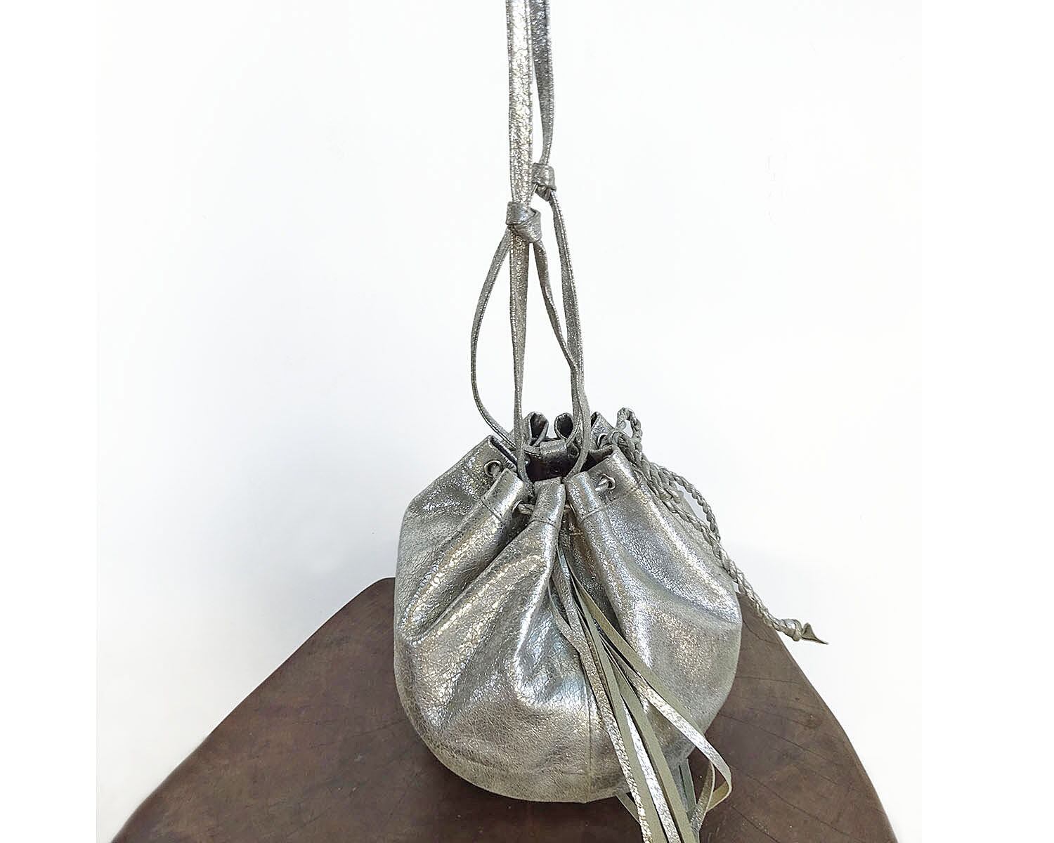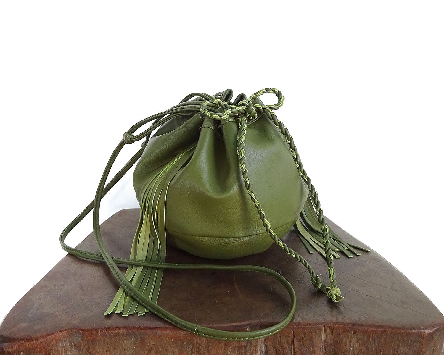 丸く可愛らしいボディーに2本の革ひもを縒って(よって)