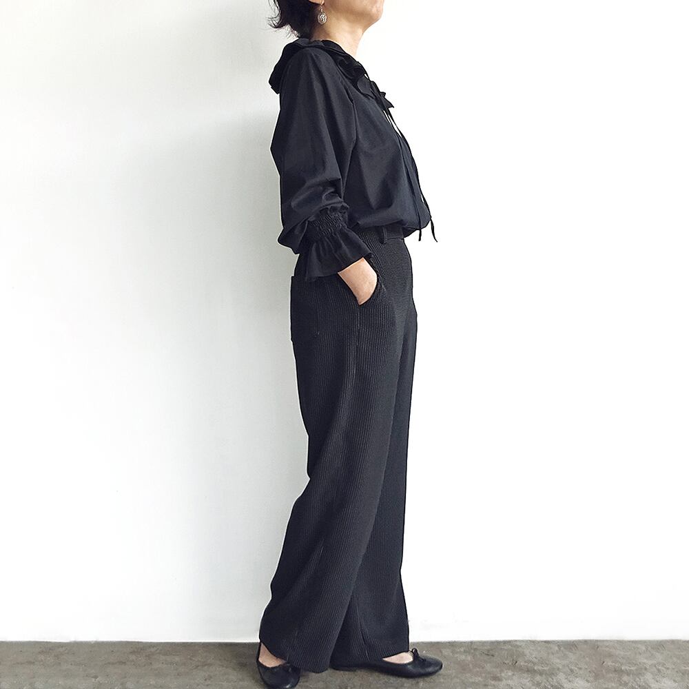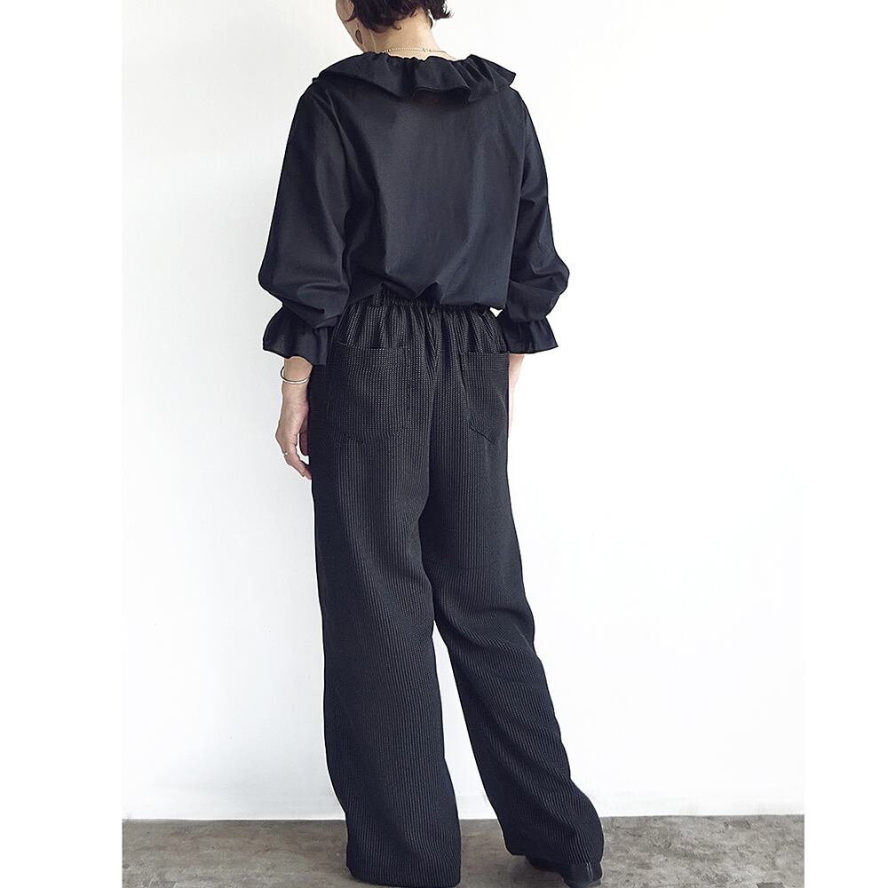 セットアップ♪ ダブルラッフルカラーブラウス&ピンストライプパンツ(ブラック&ブラック)