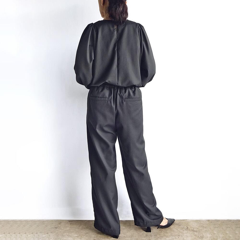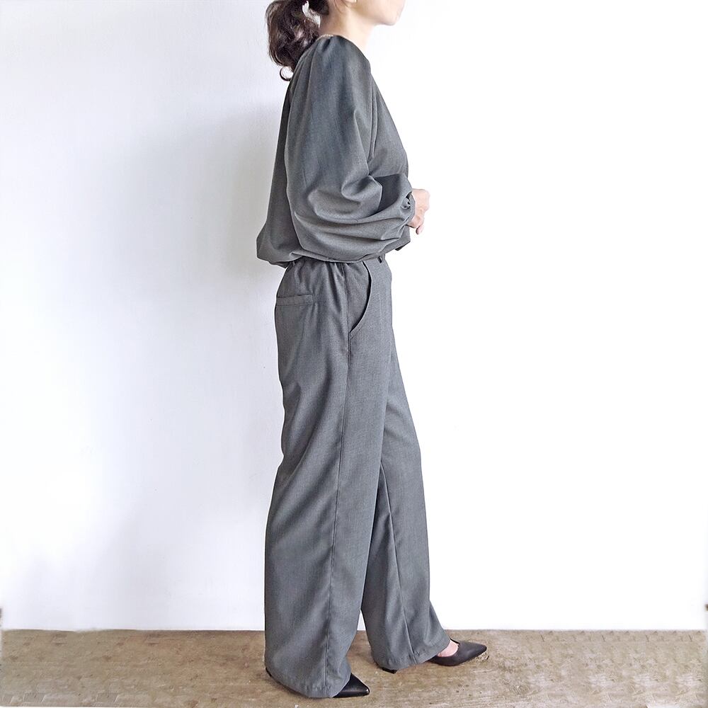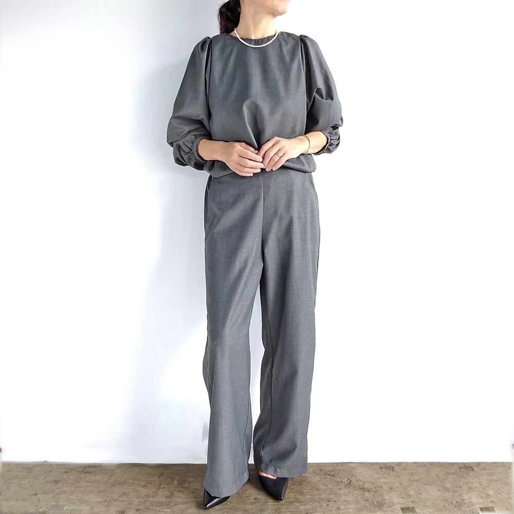 肩山にギャザーを入れ華やかさをプラスしたシンプルなブラウスは
