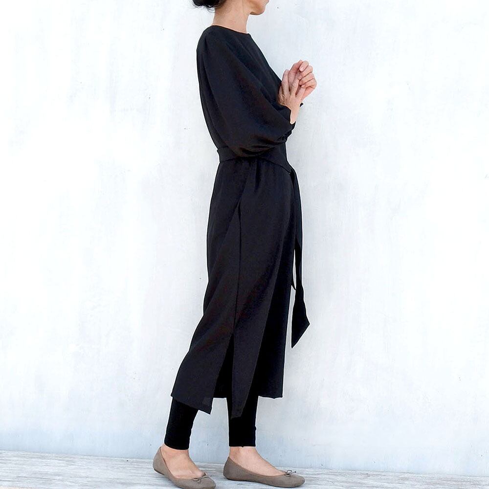 ジョーゼットに似た上品なイメージの梨地のストレッチ素材のワンピースを